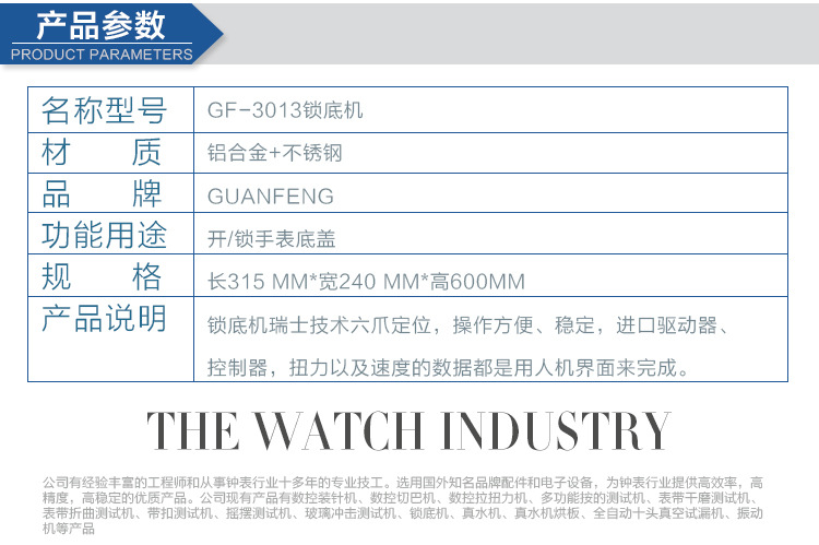 锁底机瑞士技术,六爪定位,操作方便、稳定,进口驱动器、控制器,扭力以及速度的数据都是用人机界面来完成。